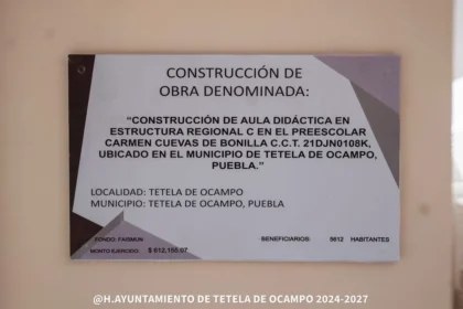 El H. Ayuntamiento de Tetela de Ocampo 2024–2027 dirigida por el presidente municipal Oscar Méndez llevaron a cabo la inauguración de la obra “Construcción de aula didáctica en el Preescolar Carmen Cuevas de Bonilla”, reafirmando su compromiso con la educación y el futuro de la niñez.